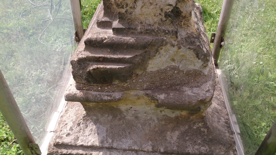 Sanierung der vier Sandsteinstatuen aus der griechischen Mythologie. Entfernen der nicht mehr tragfähigen Teile.