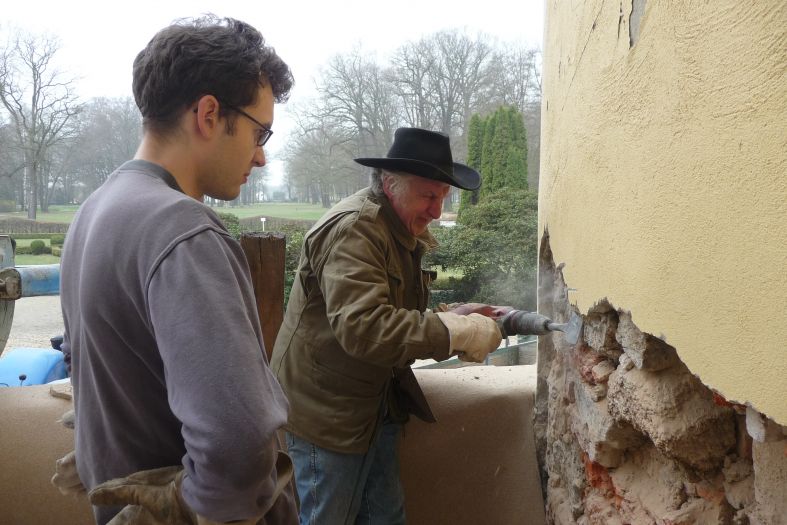 Die Betonputzhülle musste sehr vorsichtig abgetragen werden, um die Mauern nicht noch stärker zu schädigen.