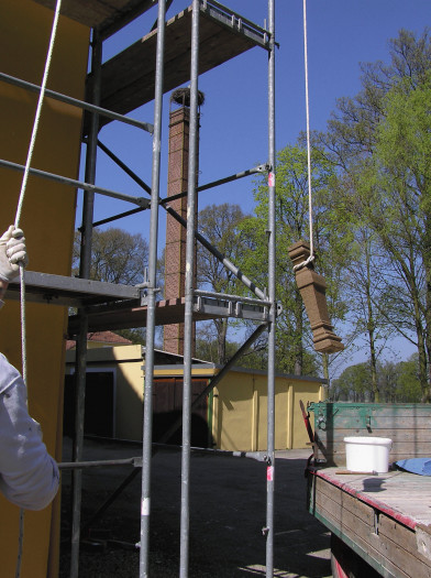 Die Geländersäulen der Terrasse im 2. Stock wurden nach unten gebracht und repariert.