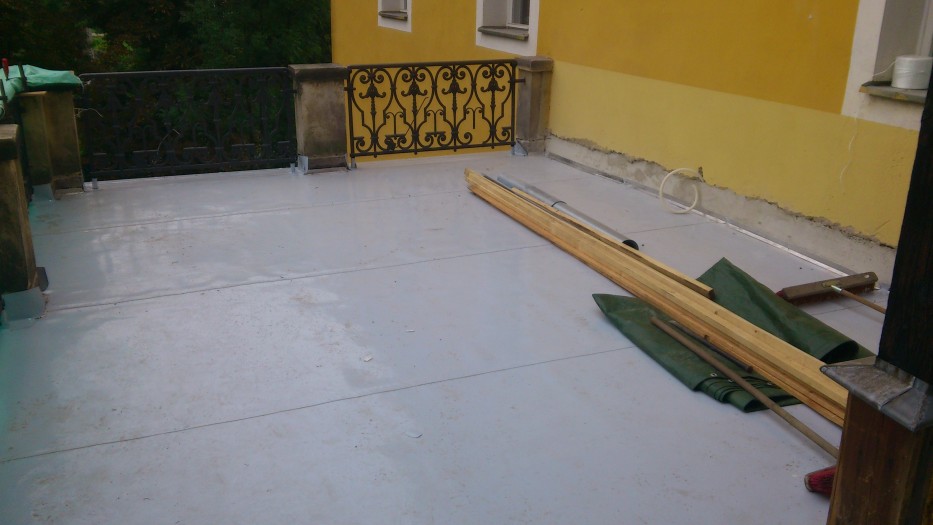 Neu hergestellte Abdichtung auf Frieders Terrasse. 2013.