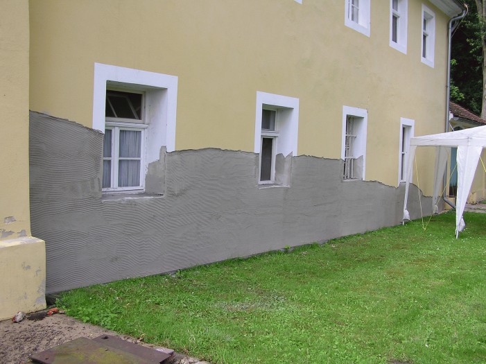 Kavaliershaus 1 A Nordseite erhält den zweiten Opferputz.