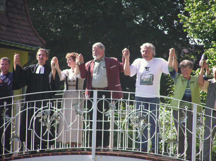 Auf altem Grund, wo früher schon über Jahrhunderte eine Holzbrücke stand, wurde 2004 geplant und 2005 vollendet, eine Metallbrücke mit 47 handgeschmiedeten Rosen, verzinkt und weiss lackiert, gebaut.