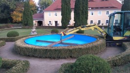 Die Springbrunnenschale, gebaut 2010 war an den Schweißnähten nicht UV-beständig. Neubau am 16.Oktober 2018.