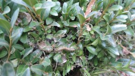 Der Buchsbaumzünsler, vermutlich aus Ostasien importiert, hat 2018 auch unsere Buchshecke gefunden.