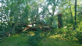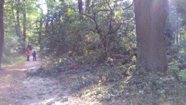 Pünktlich am Freitag vor dem Parkfest 2018 ist die stolze Eiche gebrochen. Um die Verkehrssicherheit des Parks, vor allem für spielende Kinder zu gewährleisten, wurde der Baum am Freitag beräumt.