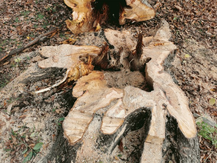 Wurzelstock von einer in die Jahre gekommene Ulme.