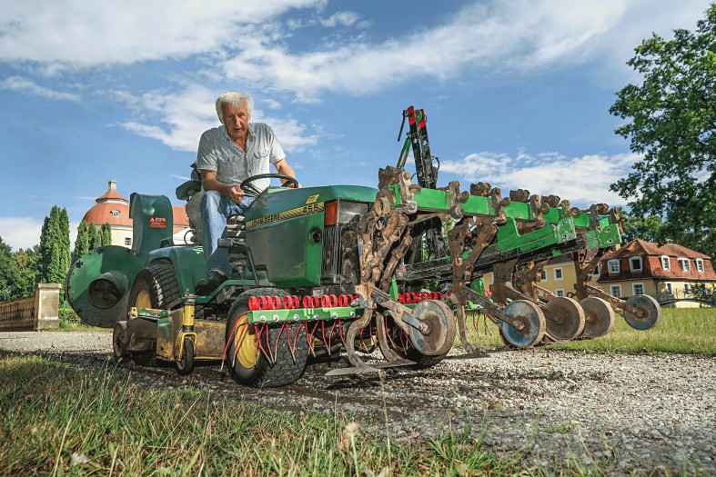 Der Wildkraut Fuchs ist ein Eigenbau zur chemiefreien Unkrautbeseitigung auf allen Parkwegen.