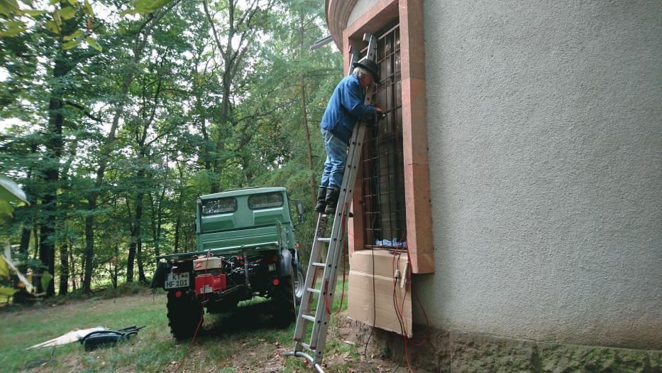 Am Mausoleum der Grafen Holnstein mußte 2018 die Eichentüre und das Schutzgitter des Fensters saniert werden.