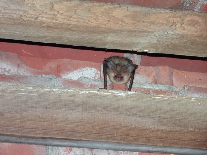 Braune Langohrfledermaus im Südturm. Mehrere hundert Artgenossen wohnen im Schlossensemble und im Park.
